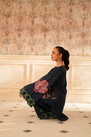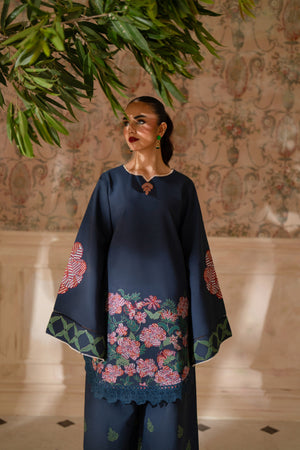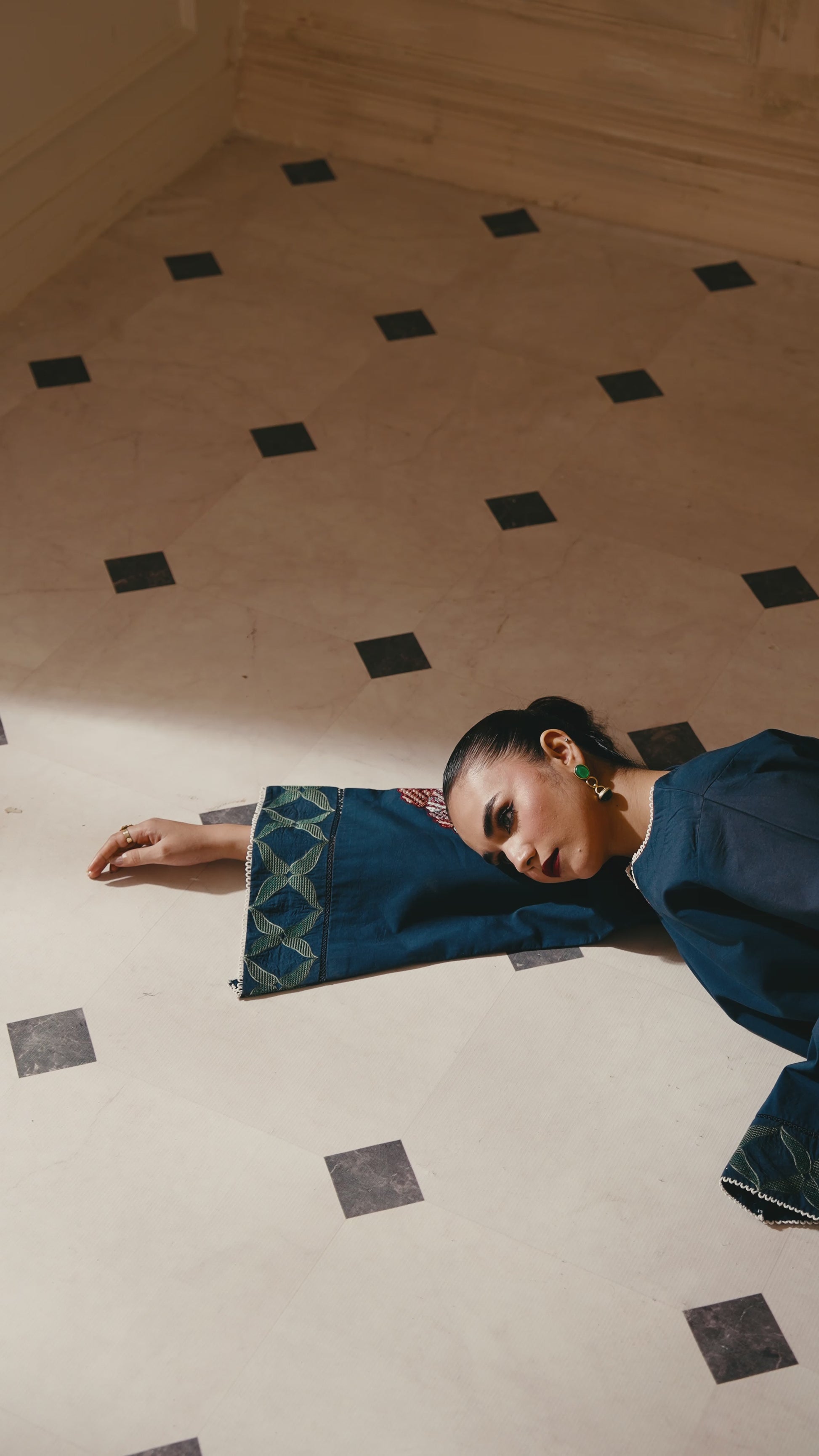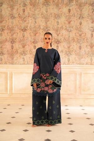 Elevate your professional style with our dark blue two-piece stitched dress, paired with matching embroidered trousers. The dress's classic design and the trouser's intricate embroidery demonstrate exceptional craftsmanship, making it a standout choice.