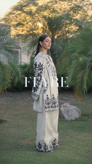 Minimal yet captivating — Pebble reflects quiet sophistication through its striking monochrome palette. Crafted on premium winter khaddar, the outfit features detailed embroidery that enhances its timeless black-and-white contrast.
