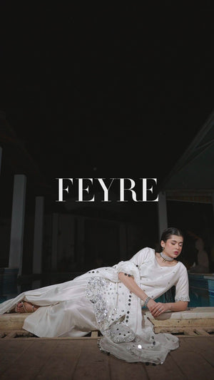 The look is completed with a medium silk dupatta, adding fluid charm and balance to the ensemble. Perfect for festive evenings, intimate gatherings, or refined celebrations, this dress embodies Feyre’s philosophy — where cultural heritage meets modern elegance