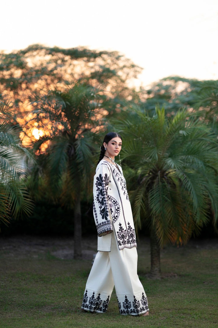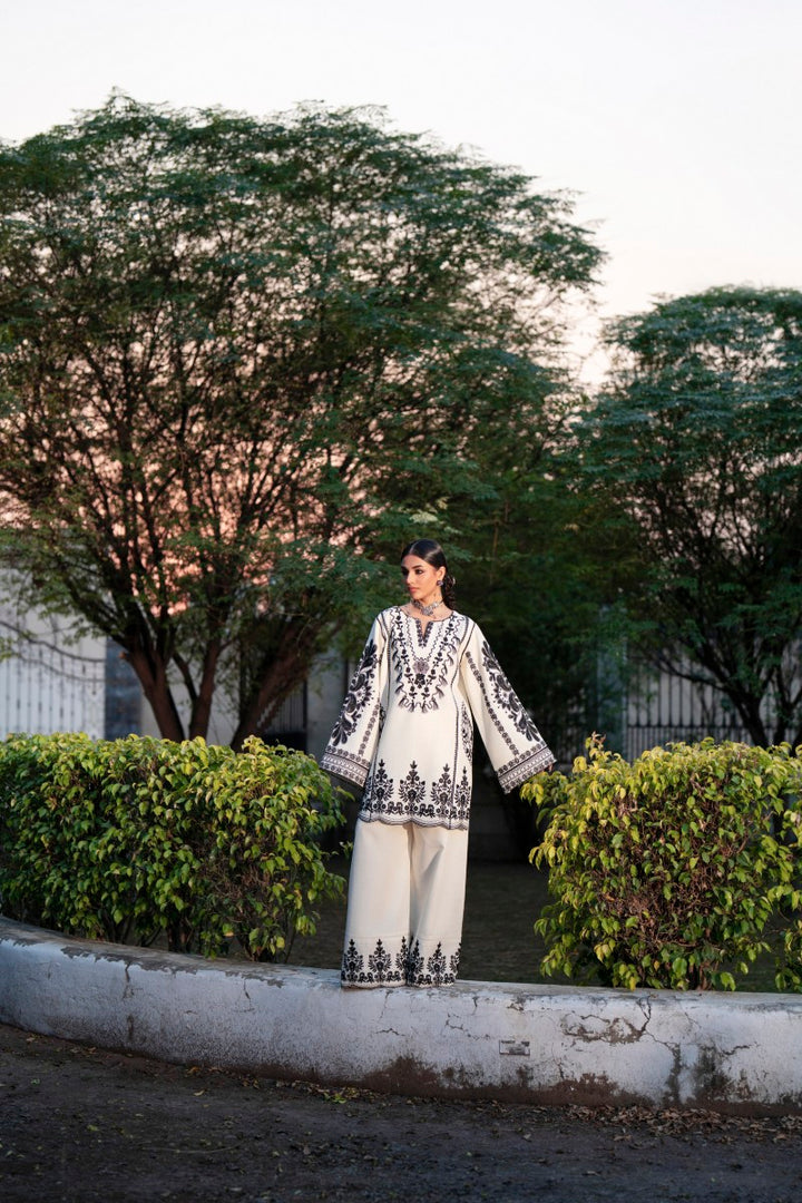 Minimal yet captivating — Pebble reflects quiet sophistication through its striking monochrome palette. Crafted on premium winter khaddar, the outfit features detailed embroidery that enhances its timeless black-and-white contrast.