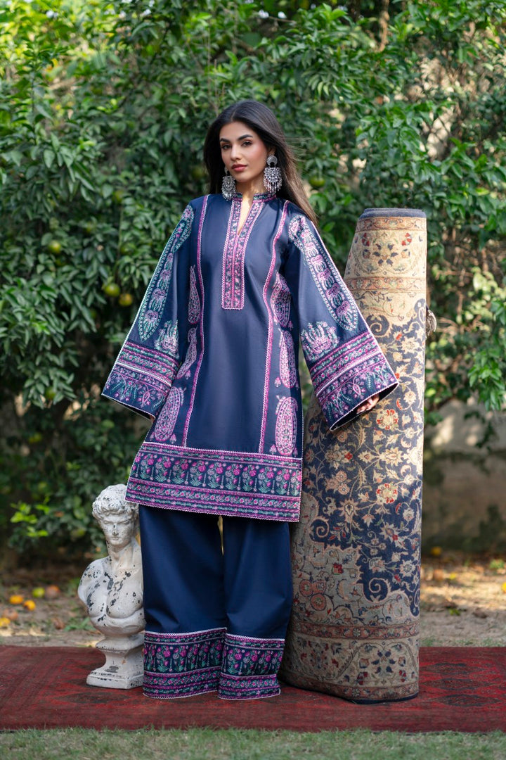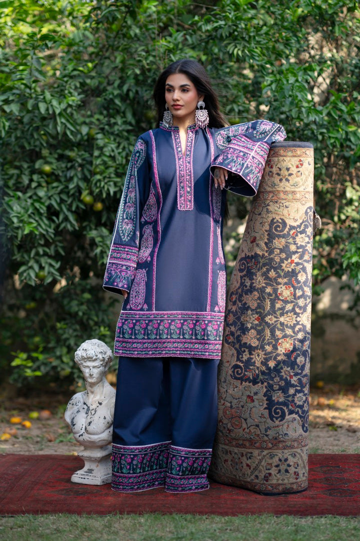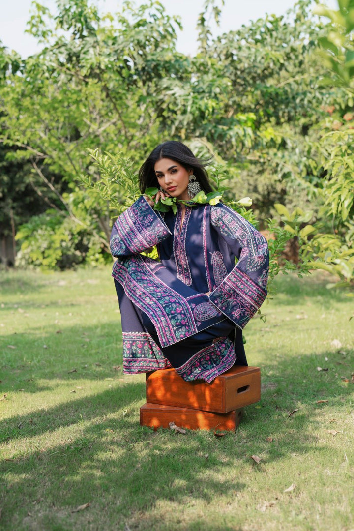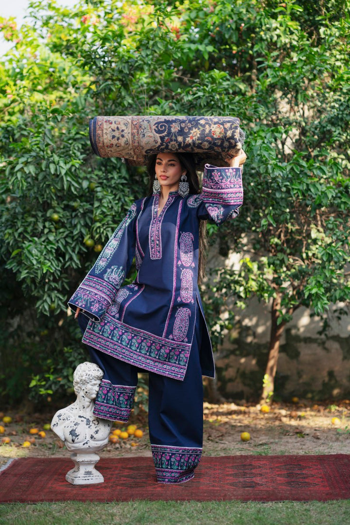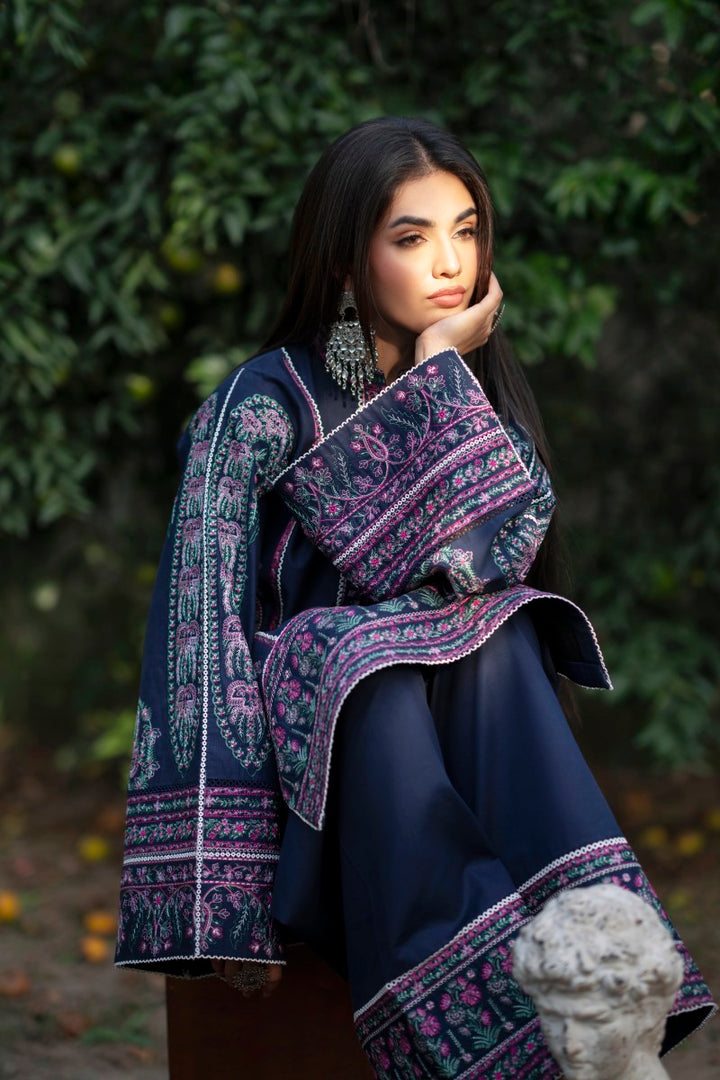 Graceful and poised — Sapphire embodies winter elegance in a deep navy hue. The ensemble is beautifully embroidered with intricate motifs in tones of magenta and silver, creating a perfect harmony of color and craftsmanship.
